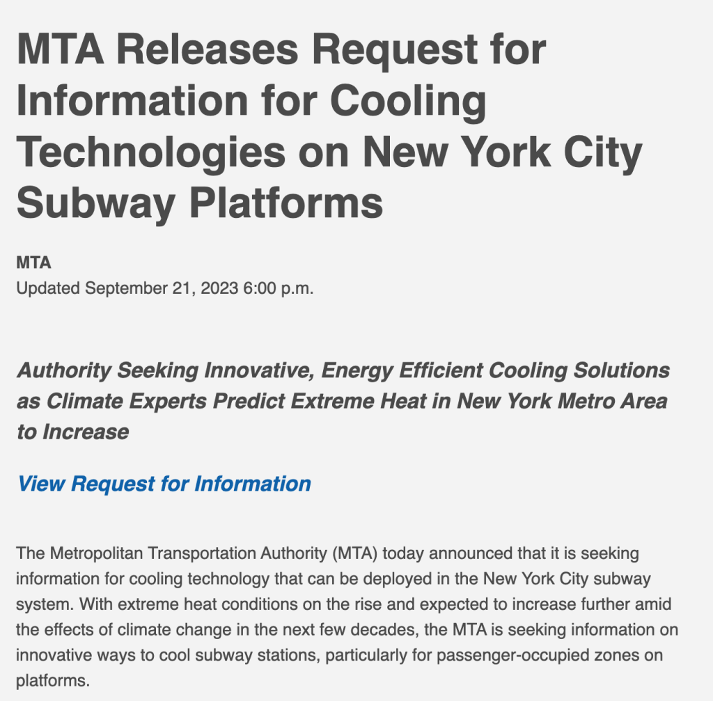 Designing a system to regulate the heat and humidity in the subways is something that, in addition to my personal investment for a pleasant subway experience, the MTA is taking seriously.